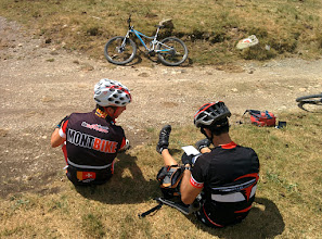 Després pujada fins a 1800+ per després baixar per pista i senda fins a La Coma, punt més baix de la ruta on parem agafar una mica de forces i refrescar-mos de la calor insuportable que fa. Ens trobem amb l'altre grup que sempre ens trobem al bar jajaja.